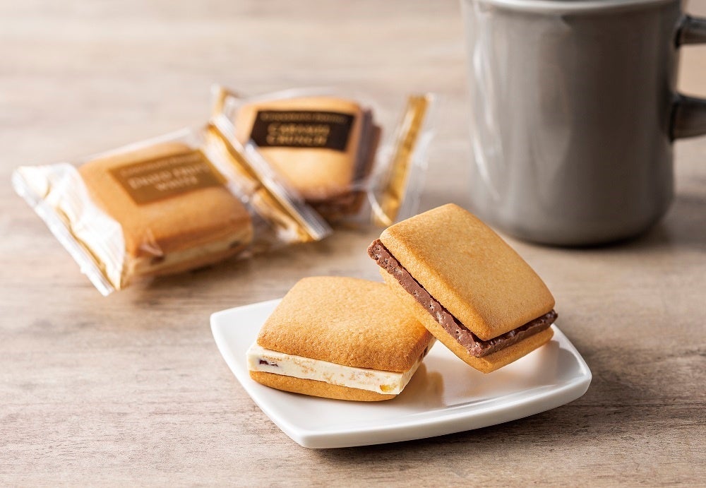 サクサクとした食感のミルクチョコとホワイトチョコのクッキーサンド。