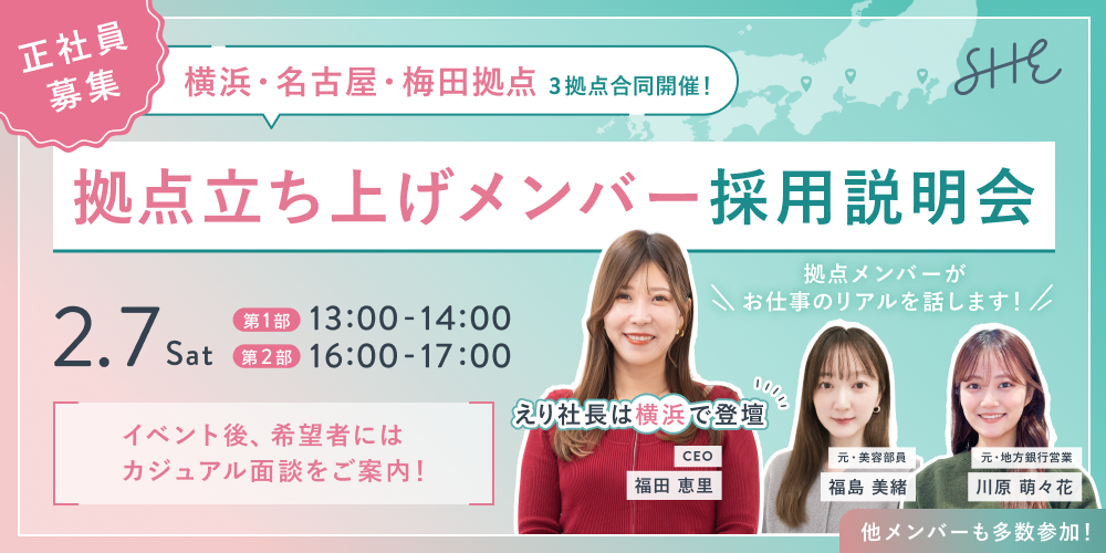 イベント名|【横浜・名古屋・梅田】SHE拠点立ち上げメンバー採用説明会