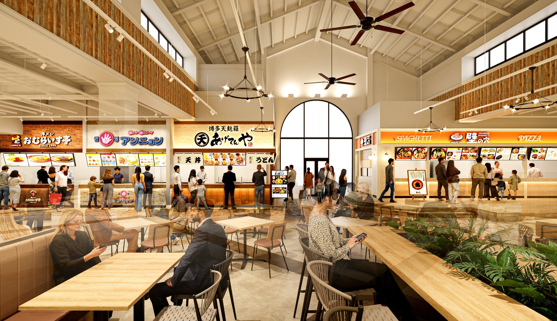 ワールドグルメジャンクションとして開業から25年、一つの区切りの年にリブランディングとして大規模リニューアルを決断いたしました。インバウンドも含めた観光客の多い場所で、より日本らしく、また、大阪グルメの色も濃く致しました。客席は513席。がっつり食べていただけるお肉の定食に、豚骨醤油のこってりラーメン、そして、大阪名物のたこ焼き、その中には焼きそば、お好み焼きもご用意しています。スイーツではクレープを中心にパフェやソフトクリーム、タピオカドリンクなどもお楽しみいただけるショップもございます。そして、創業70年、たらこスパゲッティ発祥の「壁の穴」に韓流グルメの「アンニョン」などのブランドもご用意いたしました。ちょっと涼みにカフェ感覚でご来店されるお客様、しっかりと食べたい方、また、食後にスイーツ、たこ焼きなどをカジュアルに楽しみたい方など、様々な「食べたい」にお応えできるフードコートをコンセプトに展開いたします。各々のブランドはお客様の選ぶ楽しみも感じていただきたく、多くの種類のメニュー設定をしています。多種多彩な見映えはSNSでの投稿をかりたてます。万博イヤーで大阪に注目が集まっている中、関西国際空港近くのフードパークにも注目いただければと思います。