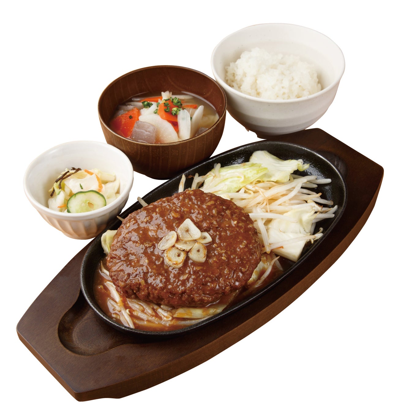 肉屋が本気で考えた“肉定食”、ここに誕生! 北海道産ビーフ100%使用しています。肉汁あふれる食べ応え満点の「りんくうハンバーグ」。 特製焼肉ソースをたっぷり絡めた牛カルビや牛ホルモン、ジューシーなポークステーキ、香ばしく焼き上げたチキンステーキなど、精肉店の目利きが光る本格メニューを取り揃えました。すべての定食メニューには「ご飯・漬物・肉屋の具沢山豚汁」が付いて、心もお腹も大満足。“肉のプロが選んだ定食”を、ぜひご賞味ください。