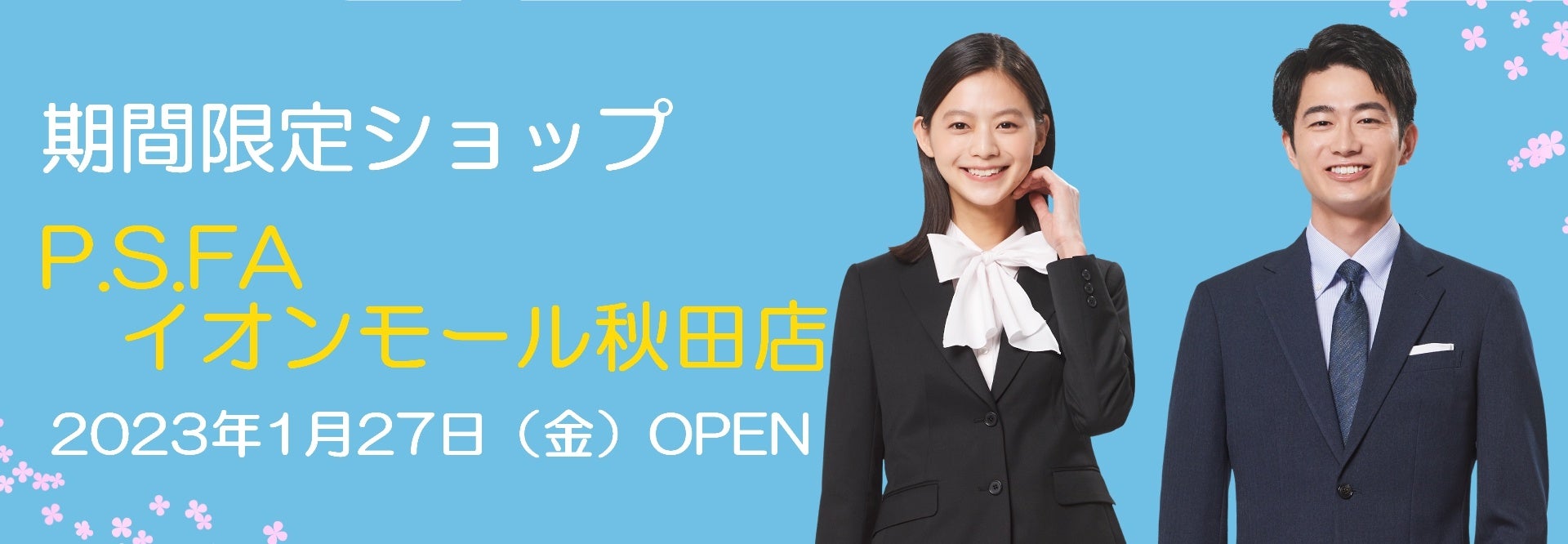 P.S.FAイオンモール秋田店POP UPショップ開催!2023年1月27日(金)オープン~春先の新生活に向け、必要なビジネスウェアが揃うショップ~