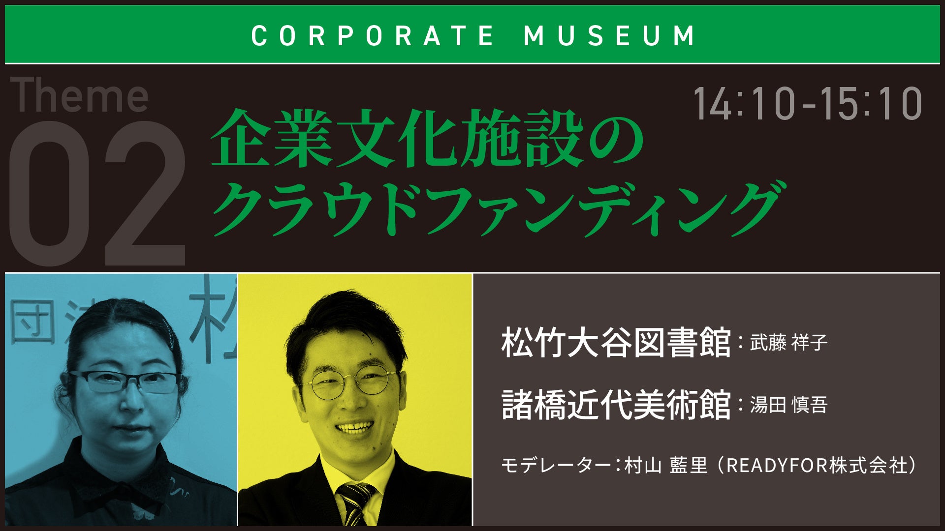 1956年、松竹株式会社が演劇・映画事業のなかで収集してきた資料を松竹大谷図書館として公開。1999年、ゼビオ株式会社の創業者がダリのコレクションをメインに諸橋近代美術館を開館。こういった企業が発端となって設立された文化施設においてクラウドファンディングはどういった背景で行われているのか。両館から担当者を招き、きっかけから今後についても掘り下げます。
