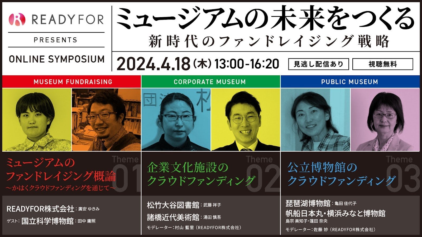 日本初・国内最大級のクラウドファンディングサービス「READYFOR」を運営するREADYFOR株式会社は、2024年4月18日(木)にオンラインシンポジウム「ミュージアムの未来をつくる 新時代のファンドレイジング戦略」を開催いたします。