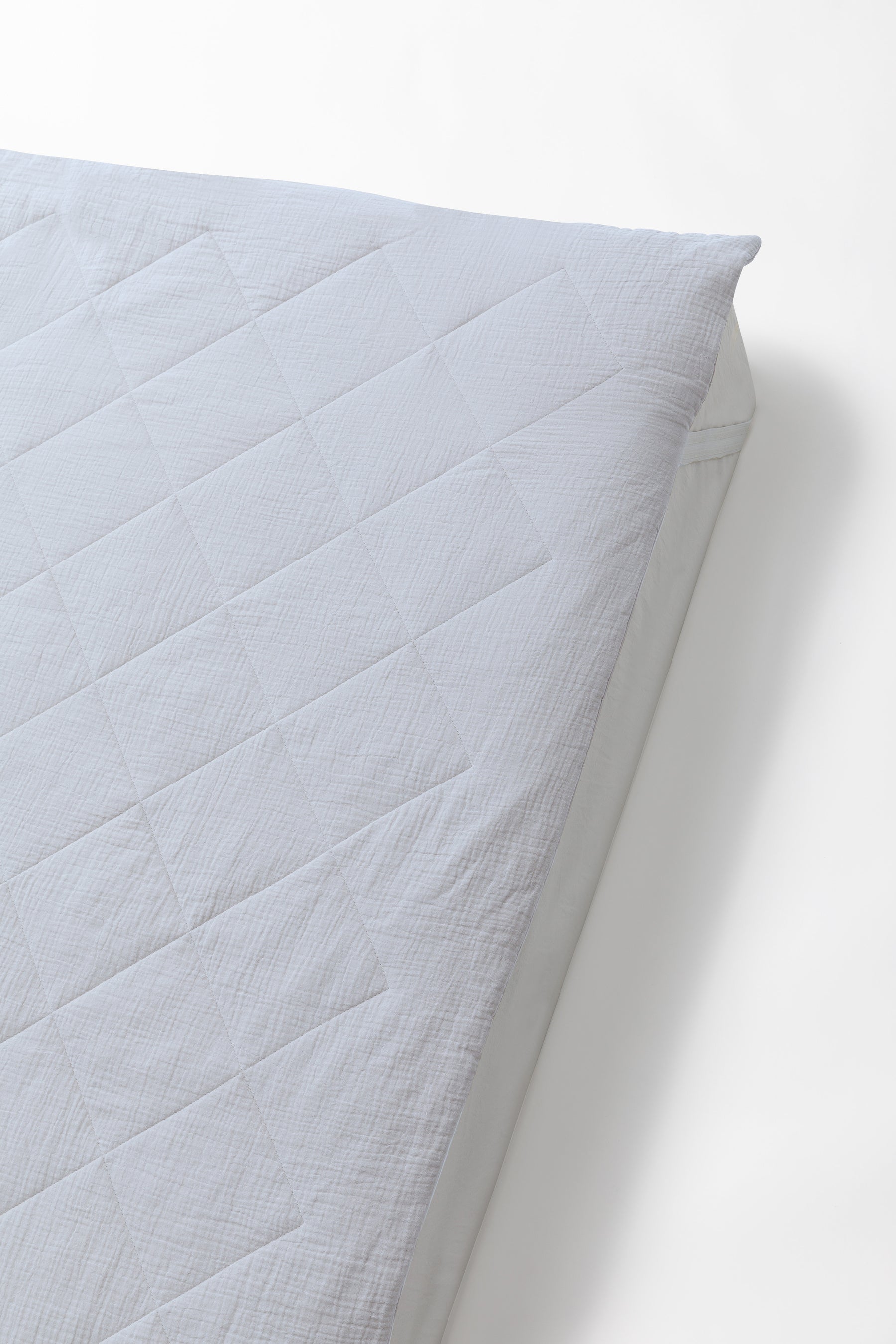 肌に触れる素材にこだわりたいというお客様からの声を元に開発した、オーガニックコットン素材の掛け布団です。オーガニックコットンを100%使用し2重ガーゼに織り上げることにより、肌あたりの良さと通気性の良さを両立。天然繊維ならではのさらっとした肌あたりも特徴です。