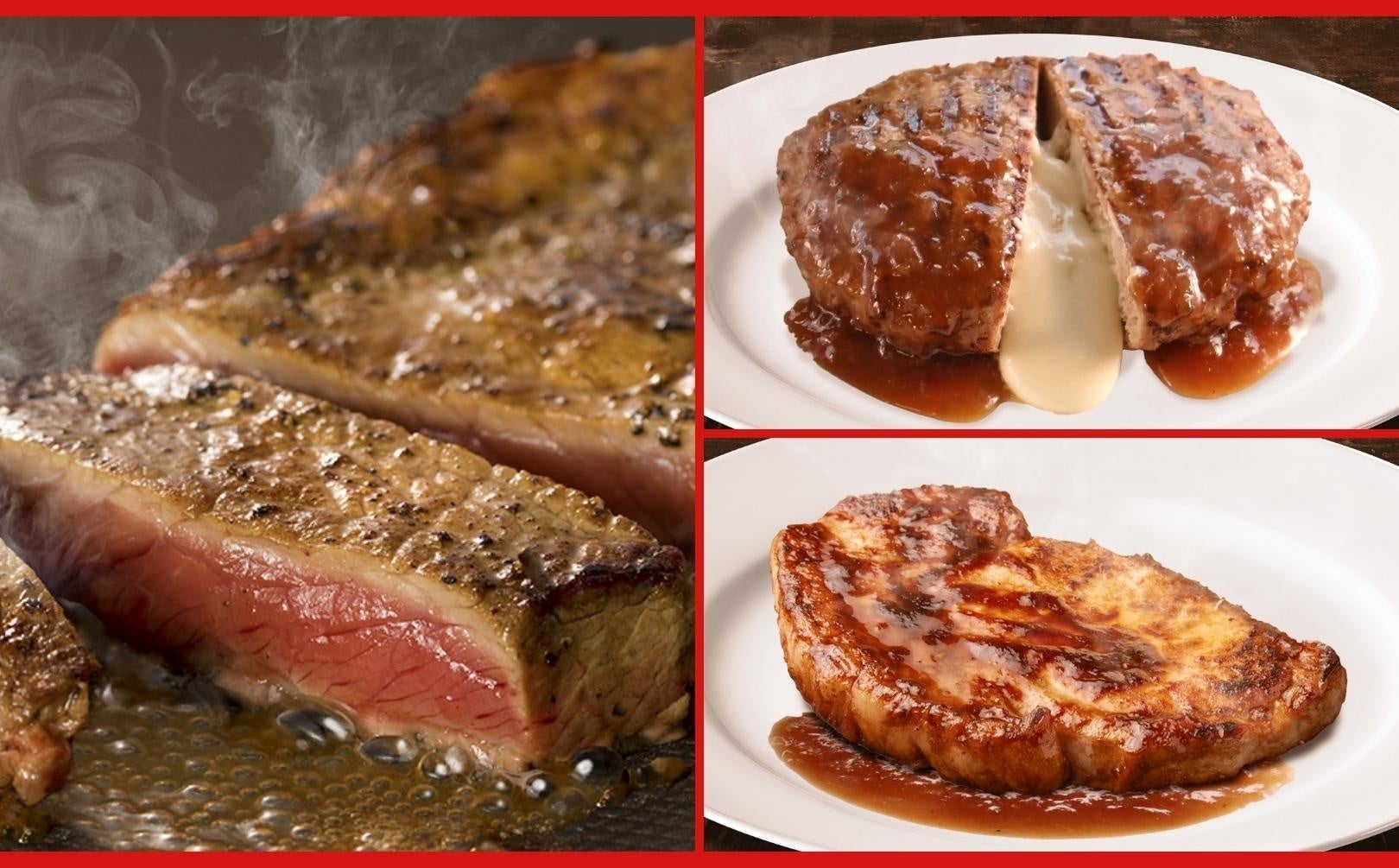 ・ステーキ3種(ビーフ/トンテキ/チーズインハンバーグ)