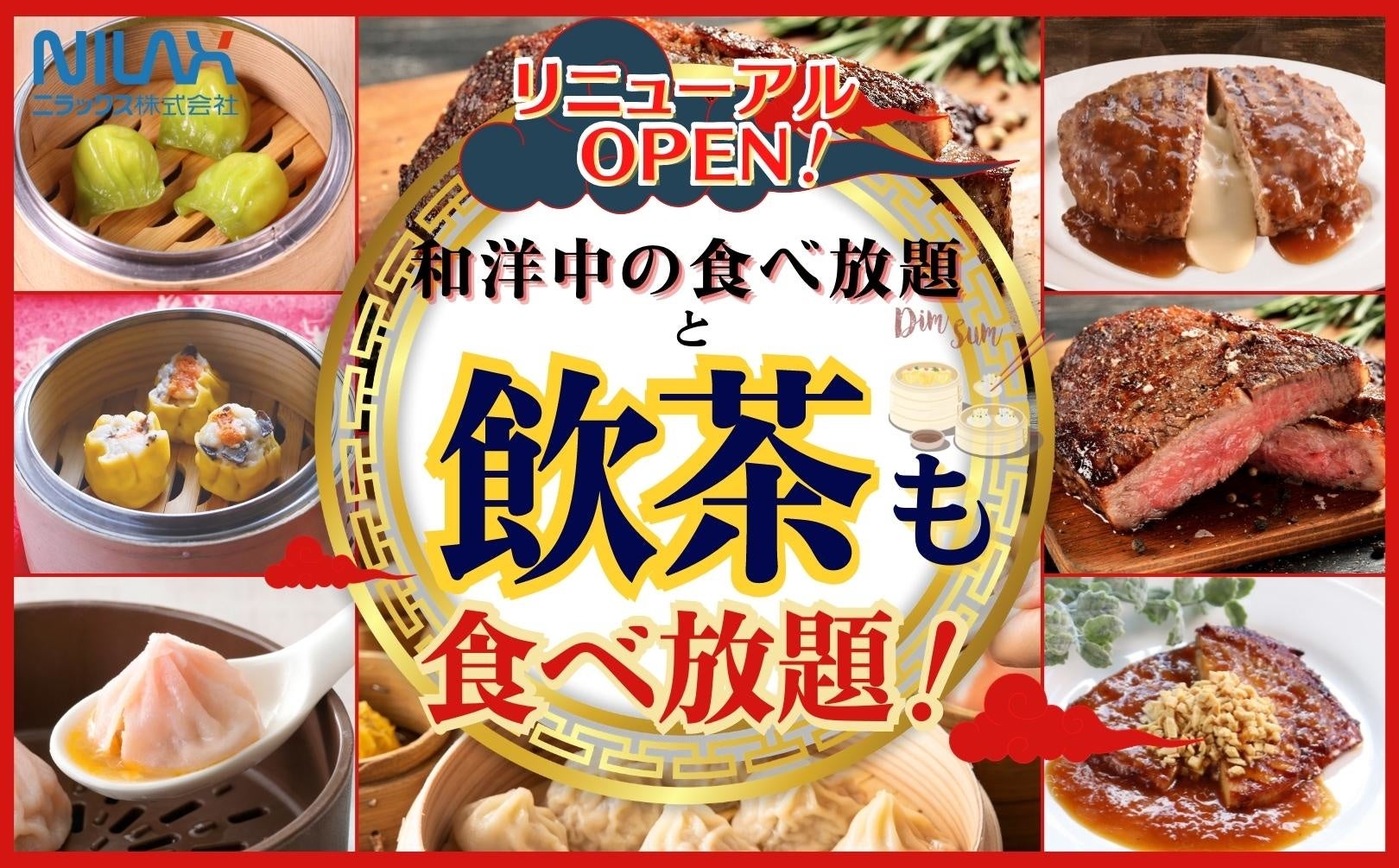 食べ放題のテーマパーク、 ニラックス株式会社(本社:東京都武蔵野市、 代表取締役:崎田 晴義)が運営する『グランブッフェ ららぽーと豊洲店』は、2022年6月14日(火)より、メニューを一新し、リニューアルOPENいたします。