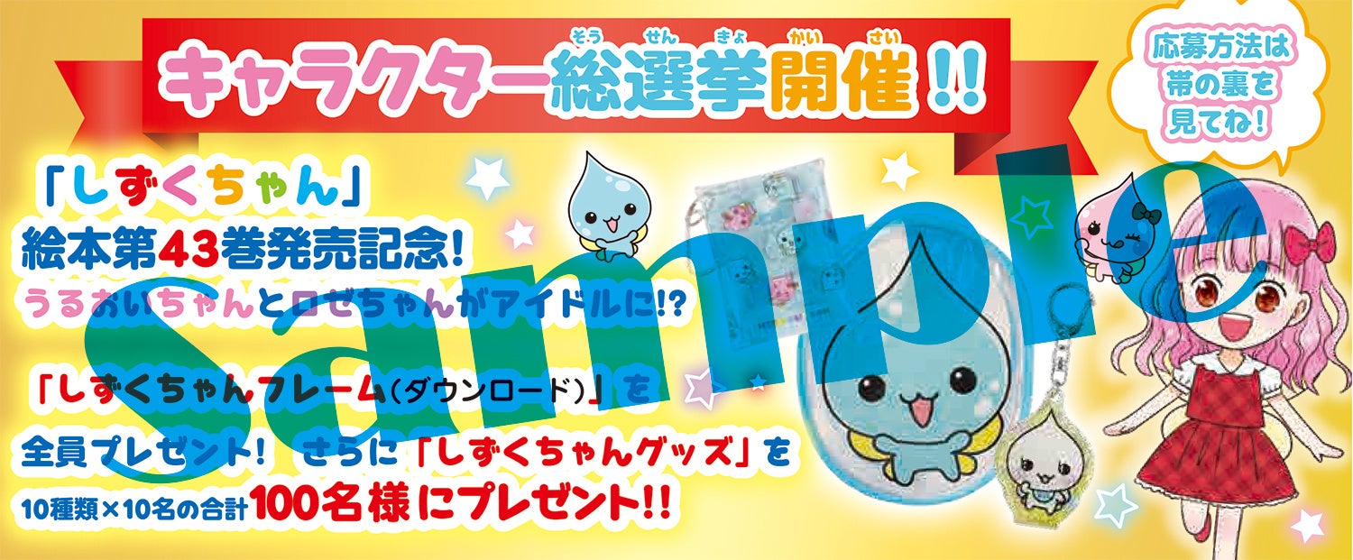 「しずくちゃん」キャンペーンオビがついている書籍が対象で、そちらの書籍を購入して投票してくださった方の中から抽選で100名様に「しずくちゃん」グッズをプレゼント!
