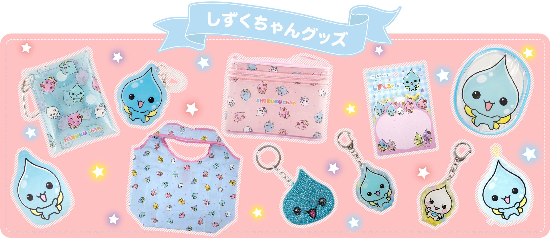 「しずくちゃん」はファンシー文具メーカー「クーリア」によって制作されたキャラクターで、2001年の誕生以来、しずく型のキュートなキャラクターたちが子どもたちを虜にしています。