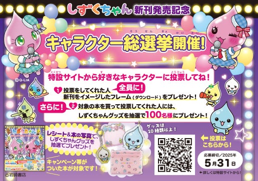 児童書出版社、 株式会社岩崎書店(代表取締役社長:小松崎敬子、本社:東京都文京区)は、『しずくちゃん43 あたしはアイドル! うるおいちゃん』新刊発売を記念して、キャラクター総選挙を開催します。