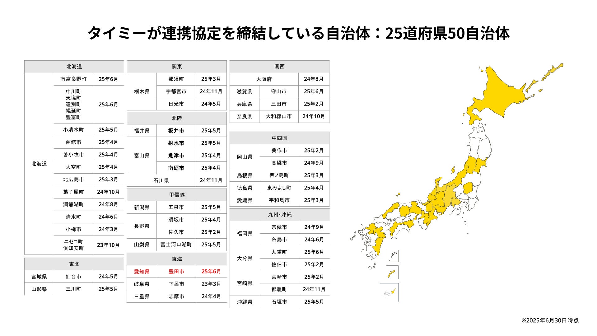 当社はこれまで24道府県・49自治体と連携協定を締結しており、今回の豊田市との連携は25道府県・50自治体目となります(※4)。なお愛知県における自治体連携は、今回が初となります。