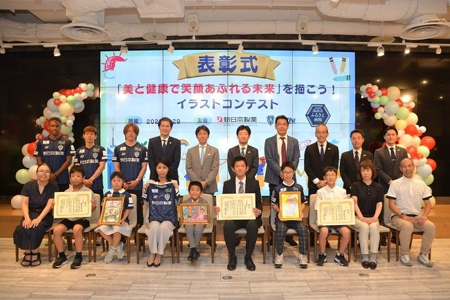 新日本製薬 株式会社(本社:福岡市、代表取締役社長CEO:後藤孝洋)は、アビスパ福岡株式会社、福岡市とコラボし、全国の小学生以下のお子さまを対象に「美と健康で笑顔あふれる未来」の絵を募集するイラストコンテストを実施。全60作品から選ばれた受賞3作品の表彰式を開催いたしました。