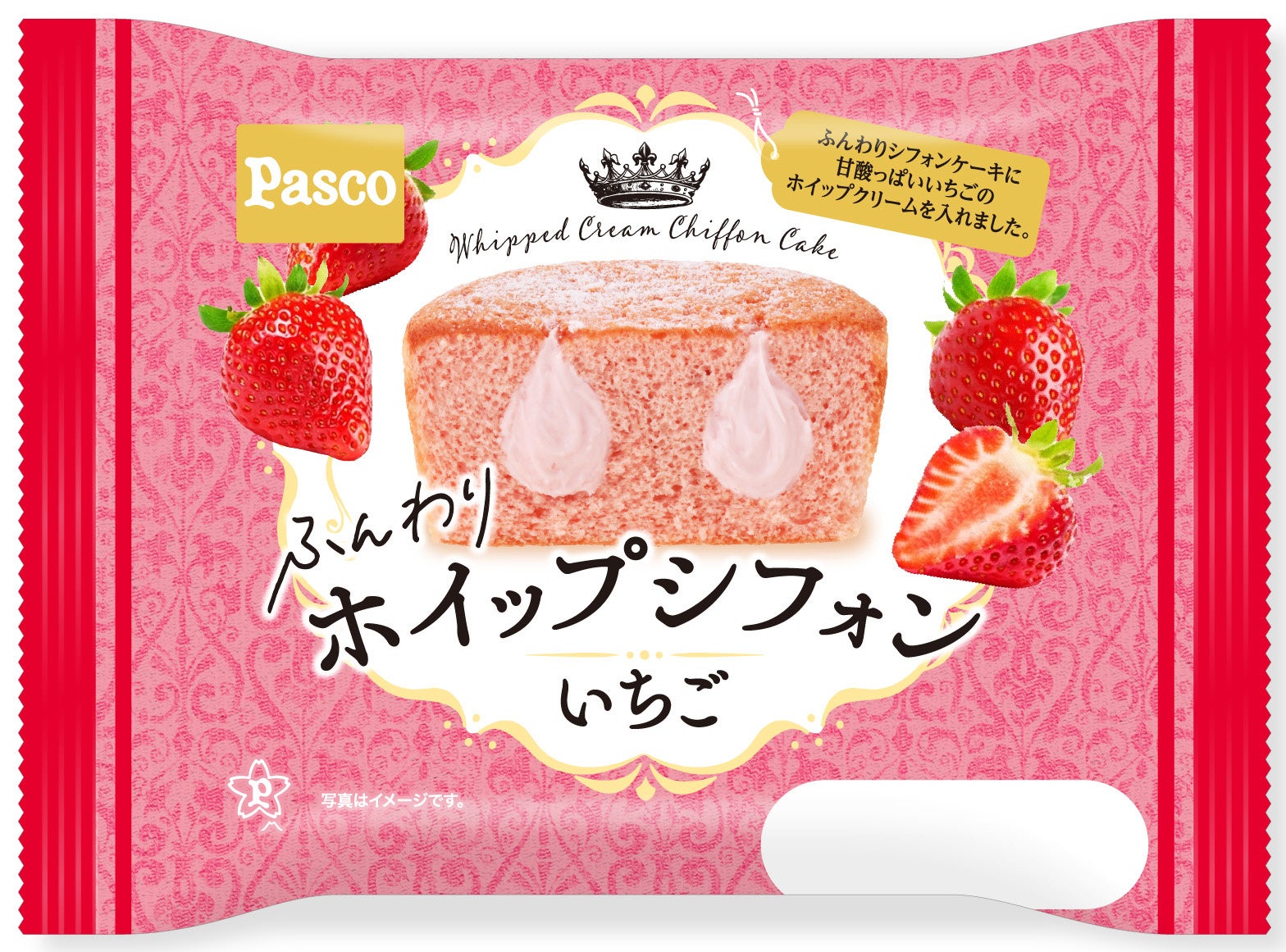 いちごジャムを練りこんだシフォンケーキ生地に、甘酸っぱいいちご味のホイップクリームを入れた商品です。