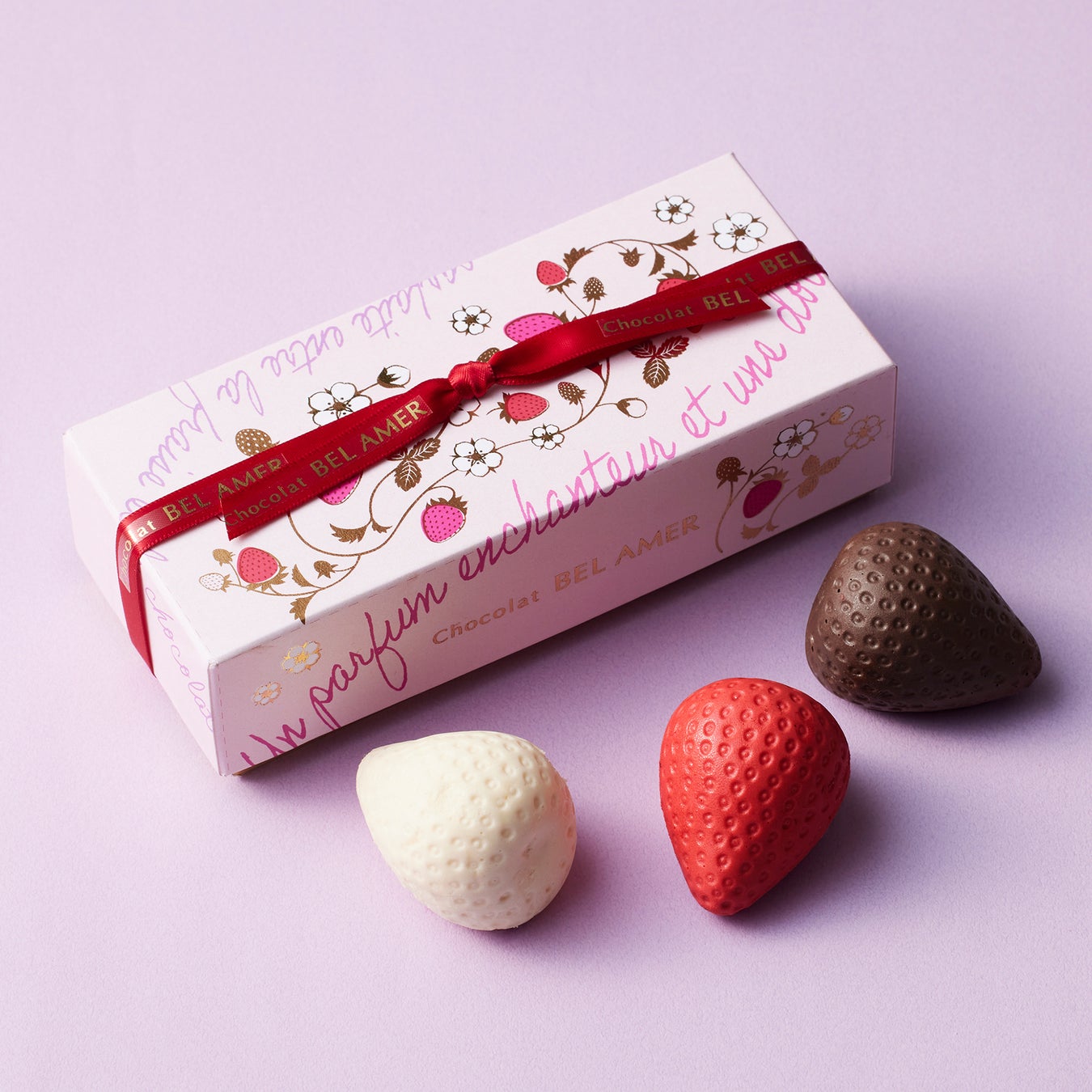 日本のショコラ専門店「ベルアメール」が、2025年のバレンタインデーに向けてご用意する新作は、苺をテーマにした3種のショコラ。