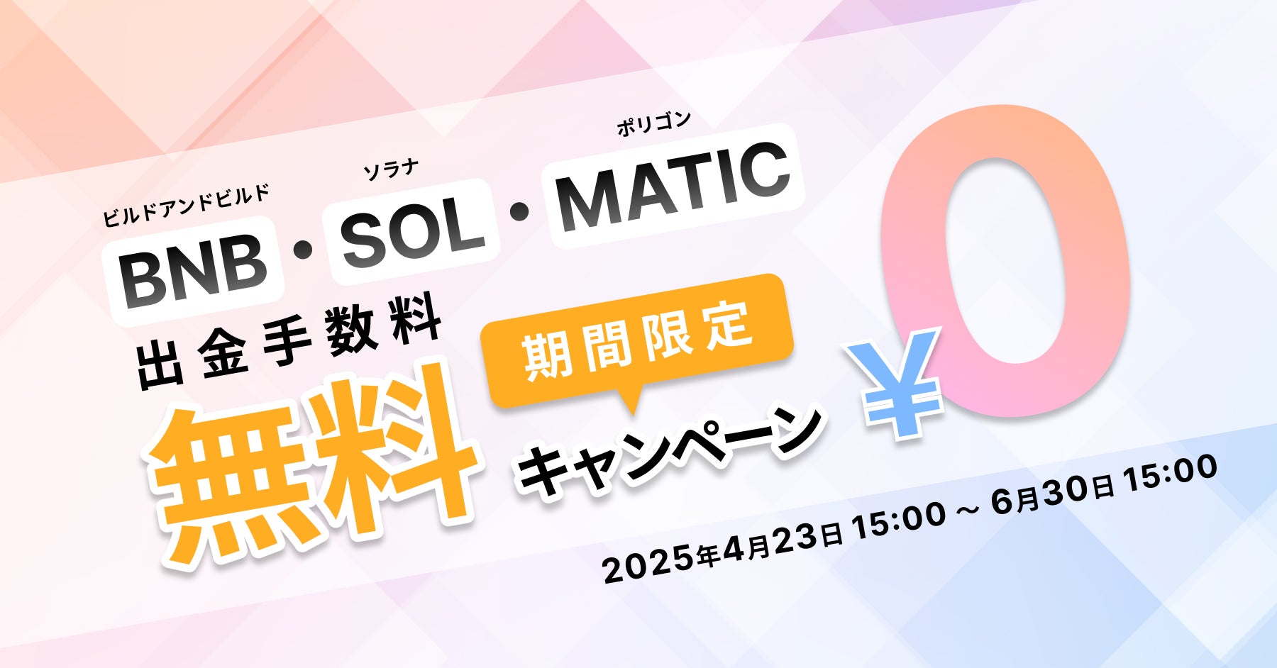 ビットトレード株式会社(所在地:東京都港区、代表取締役社長:関 磊、以下「ビットトレード」)は、2025年4月23日(水)より期間限定でBNB・SOL・MATICの出金手数料無料キャンペーンを実施いたします。