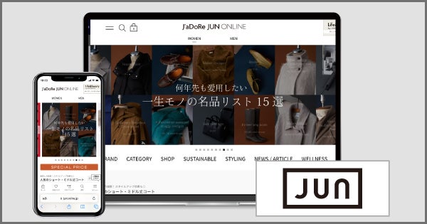 ジュンが運営する『J’aDoRe JUN ONLINE』は「毎日が楽しくなるライフスタイルを提案すること」をテーマに、ファッション・生活雑貨・フード・音楽・ゴルフウェアなど幅広いラインナップを揃えており、「ADAM ET ROPÉ」や「VIS」をはじめとする人気のブランドを展開しているショッピングサイトです。