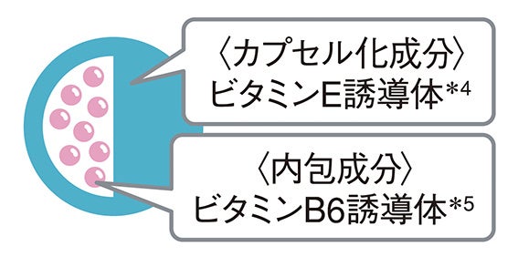 ビタミンE誘導体*4でビタミンB6誘導体*5をナノカプセル化。