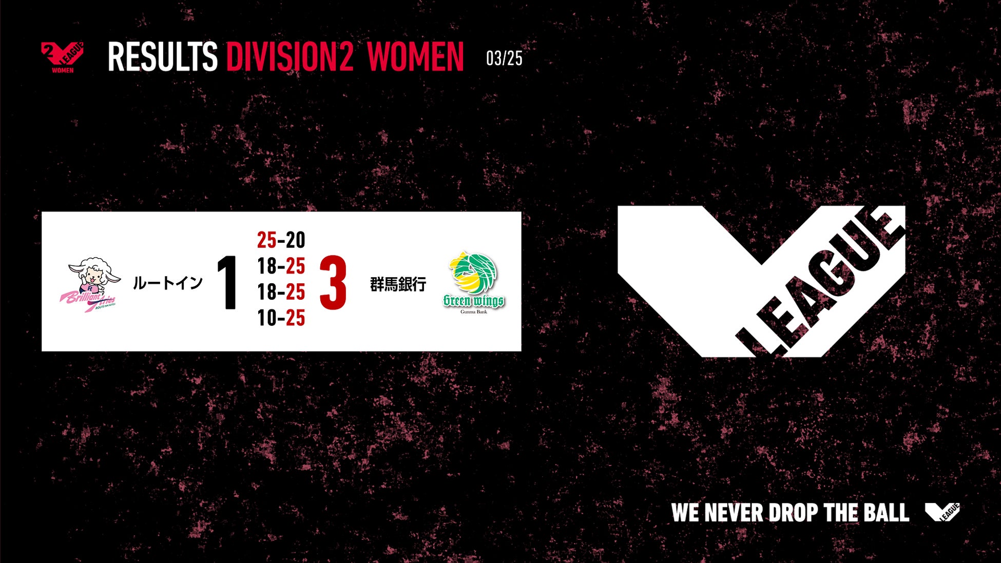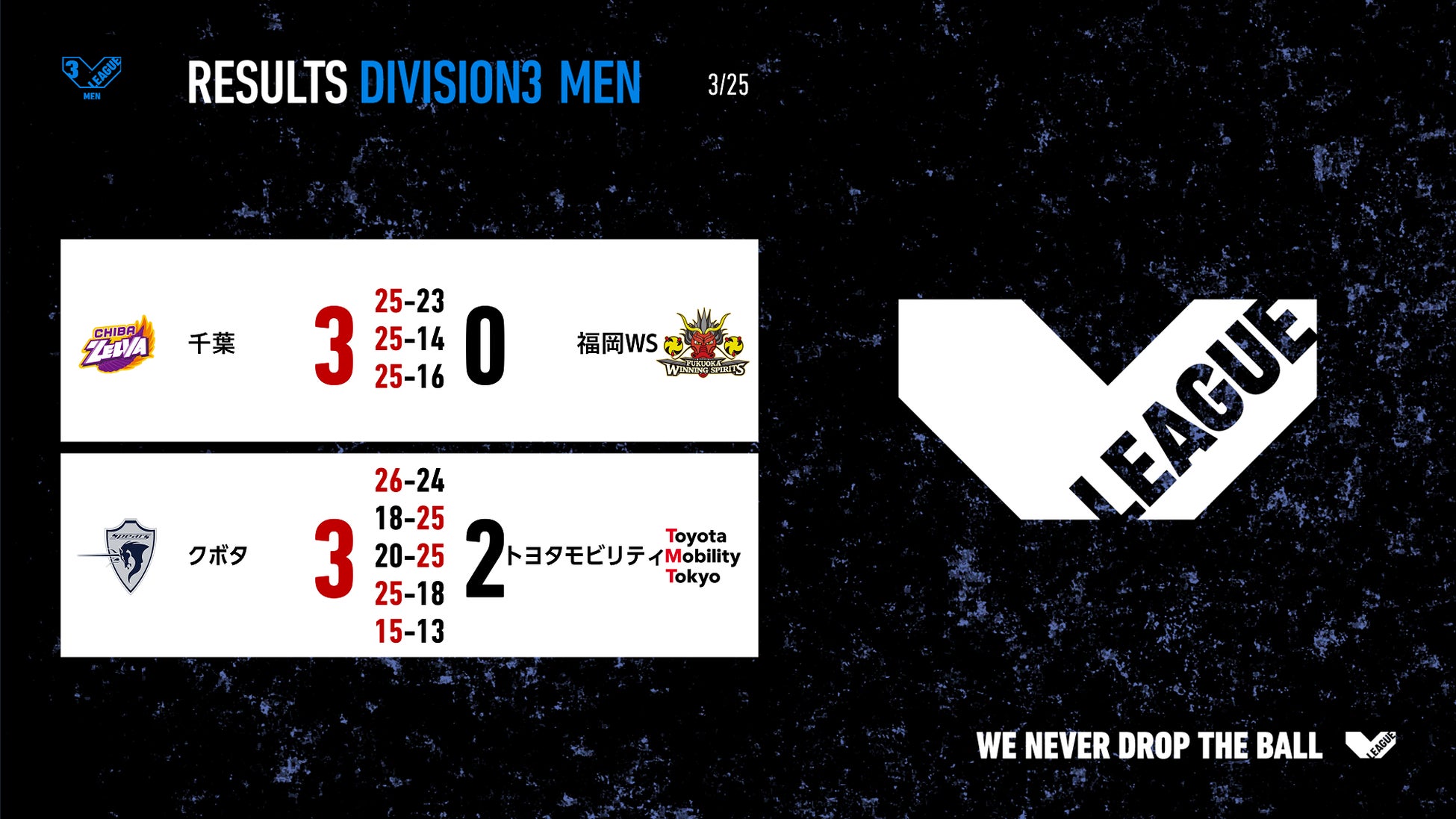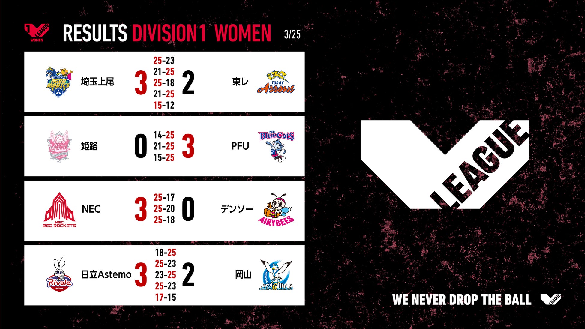 バレーボール国内最高峰リーグ V.LEAGUE【3月25日の試合結果】