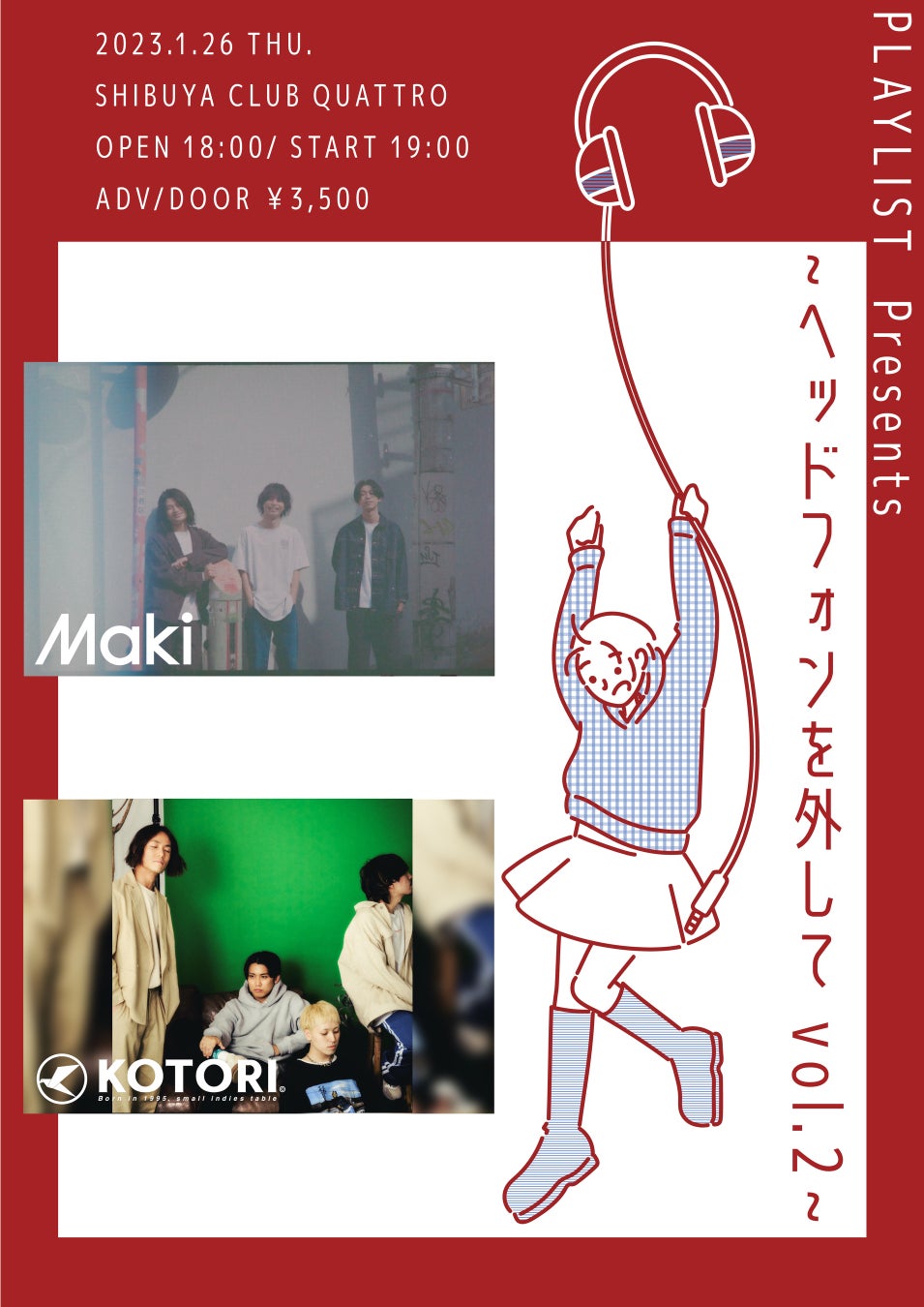 注目の若手ロックバンド KOTORI 、Maki の初対バンが決定「PLAYLIST presents “ヘッドフォンを外して vol.2”」 1/26(木)開催