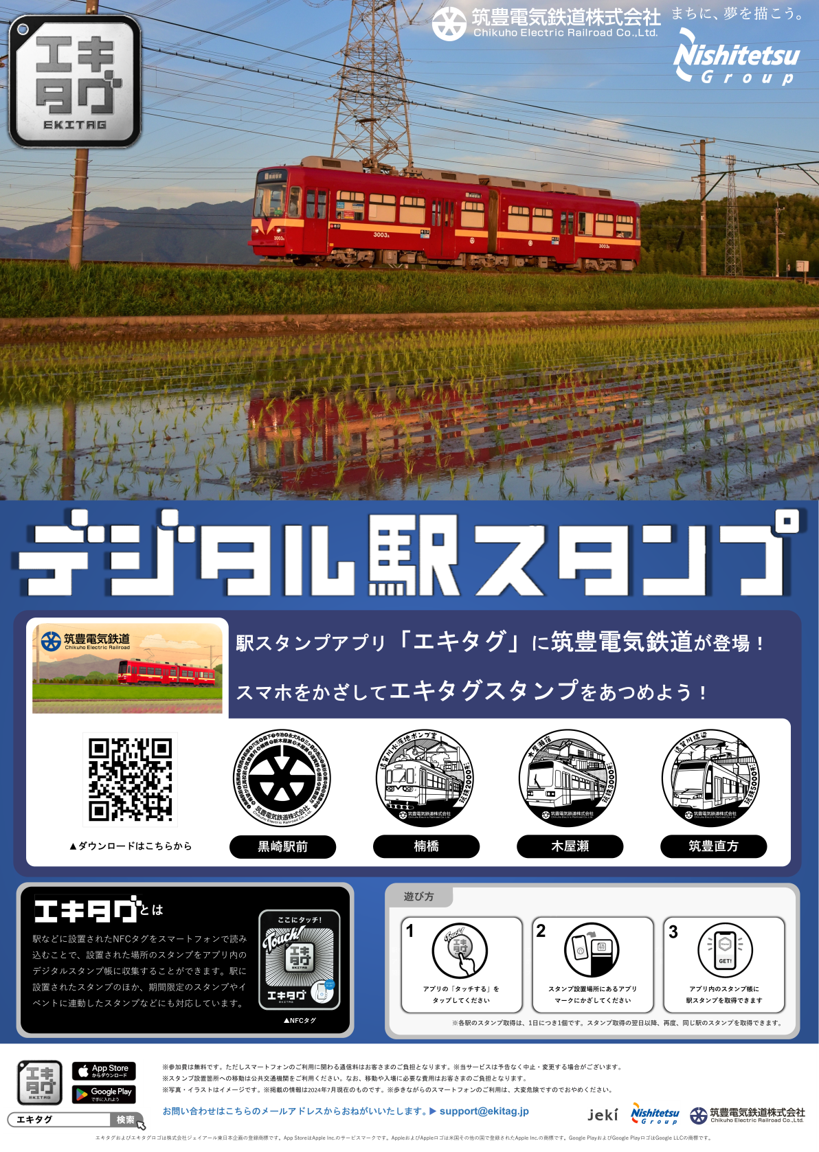 ◎株式会社ジェイアール東日本企画が提供する駅スタンプアプリ「エキタグ」では、2024年7月12日(金)より「筑豊電気鉄道」にてデジタル駅スタンプのサービス提供を開始します。