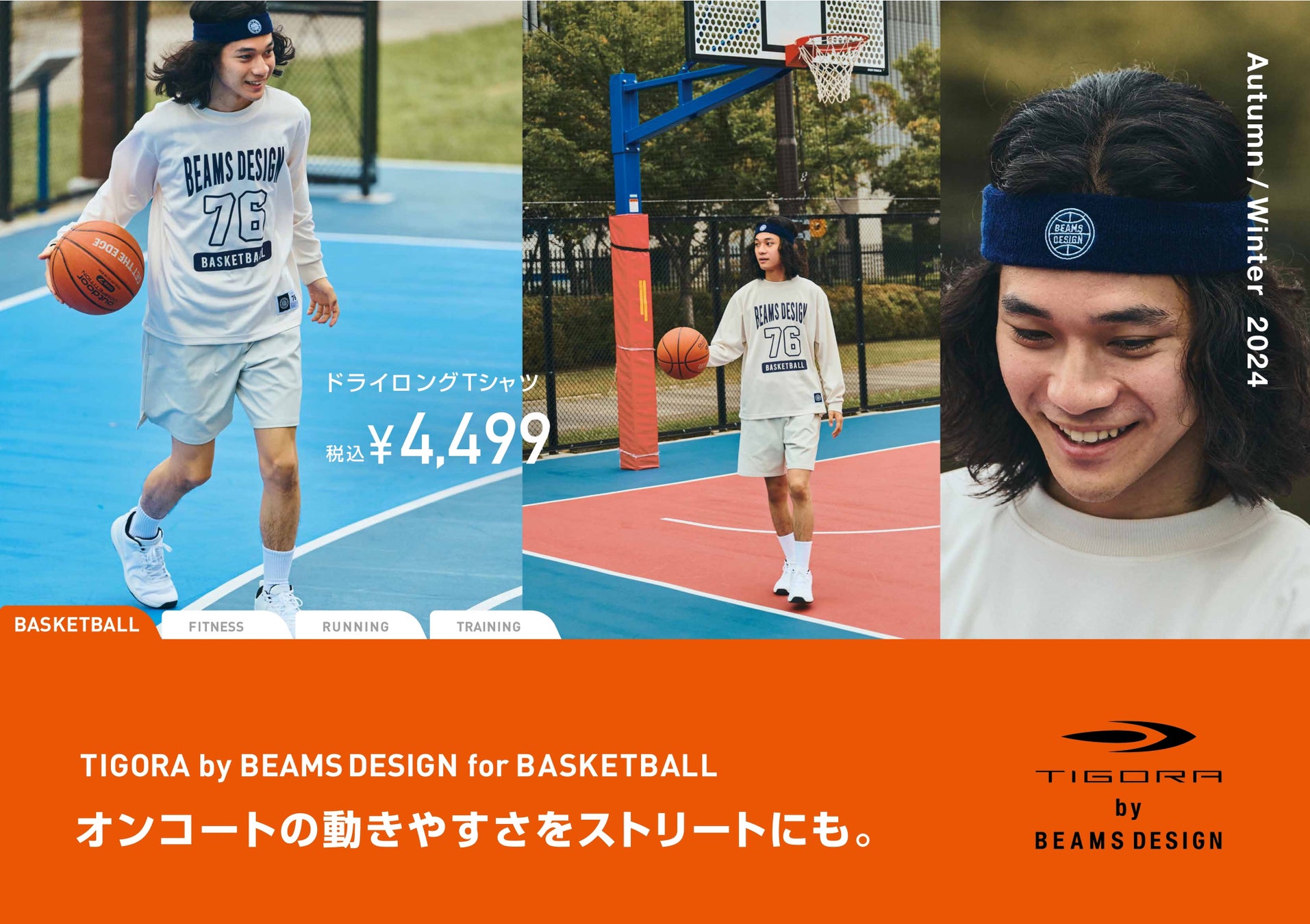 普段着のままプレーするストリートコートをイメージしたバスケコレクション。プレー中も快適さを保つため、吸水速乾のドライメッシュ生地を使用しました。カレッジテイストのBEAMS DESIGNオリジナルグラフィックをあしらい、スタイリッシュなデザインとなっています。