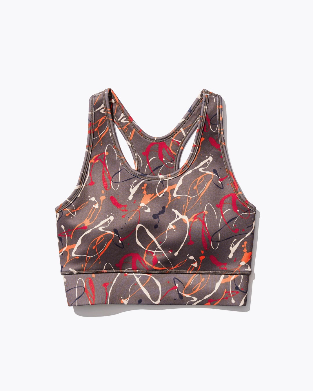 肌触りが良くコシのあるトリコットナイロン生地を使用したブラトップ。 今シーズンはマルチカラーのスプラッシュ柄で表現しました。同素材のロングタイツもご用意しており、セットでもそれぞれでも楽しんでいただけます。