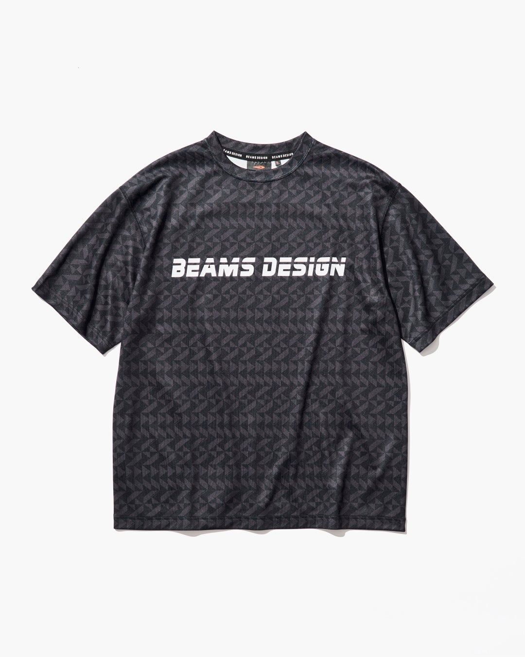 吸水速乾のドライ生地を使用し、背面をハニカムメッシュ生地で切り返すことで、通気性をアップさせたグラフィックTシャツ。 今シーズンのテーマである幾何学グラフィックと、疾走感のあるBEAMS DESIGNの新グラフィックロゴをデザインし、スタイリッシュに仕上げました。背面にリフレクターバー付きなので夕方・夜のランニングも安心です。