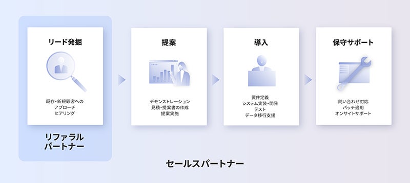 「リファラルパートナー」は、案件の紹介に特化し、人的資本経営を推進する企業やその実現を目指す企業に「POSITIVE」を紹介する役割を担います。「セールスパートナー」との連携により、人事領域における専門性とネットワークを活かし、より多様な顧客ニーズに対応し、「POSITIVE」の導入機会の拡大を図ります。