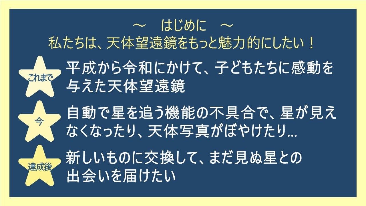 ~かわなの天体望遠鏡を蘇らせて、子どもたちに綺麗な星空と夢を見せたい~