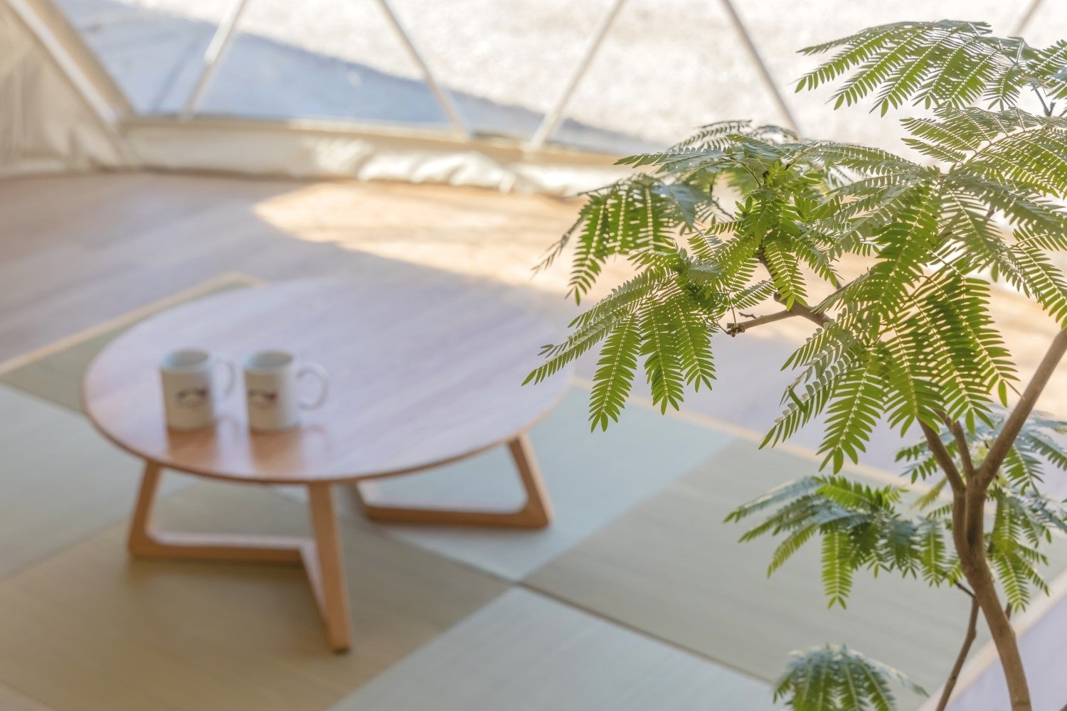 NAGOMI CAMPでは、那須の森林に囲まれた中にこれまでにはない「日本の和」を体験できるドームテントを1日4組限定でご用意しました。