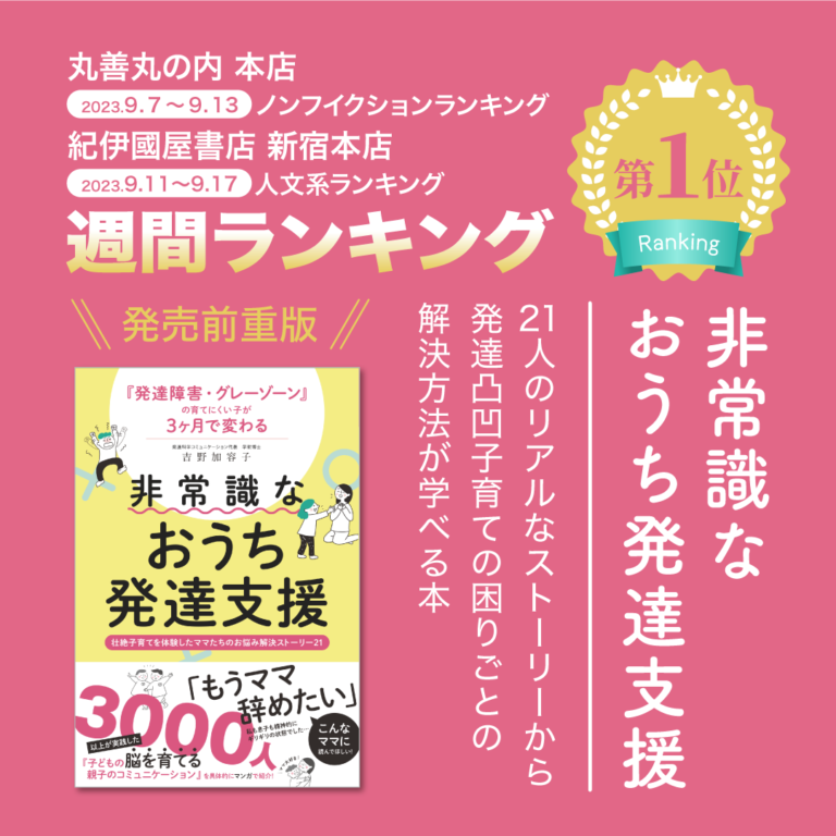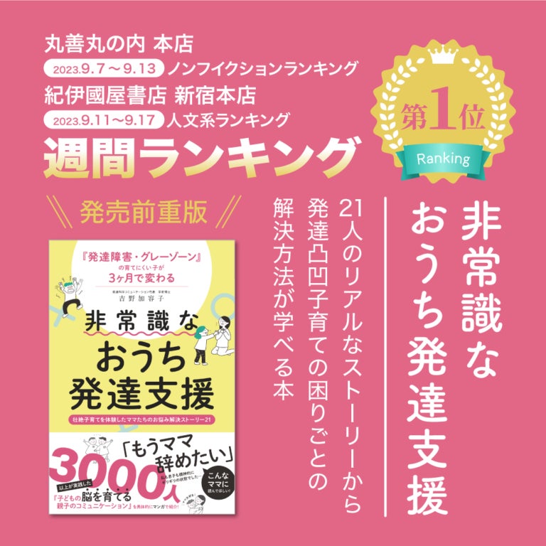 壮絶な子育て体験談の本が話題『発達障害・グレーゾーンの育てにくい子が3ヶ月で変わる非常識なおうち発達支援』都内大型書店続々とランキング1位獲得