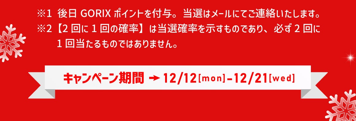 12/12(月)0:00~12/21(水)23:59まで、ポイント還元・年末ゴリックスジャンボを開催。