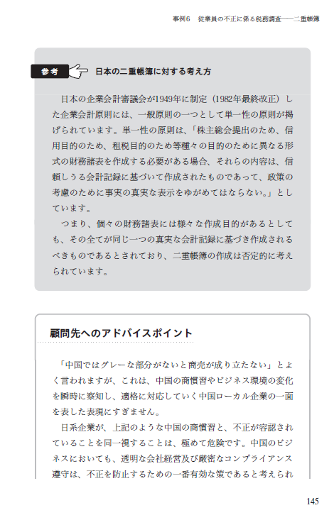 税法や税務調査の日・中比較を通してその違いや特徴を明らかにし、中国での税務調査対応でおさえておくべきポイントがわかるほか、中国での税務調査について相談事例を示しつつ、その対応策を具体的に解説しています。