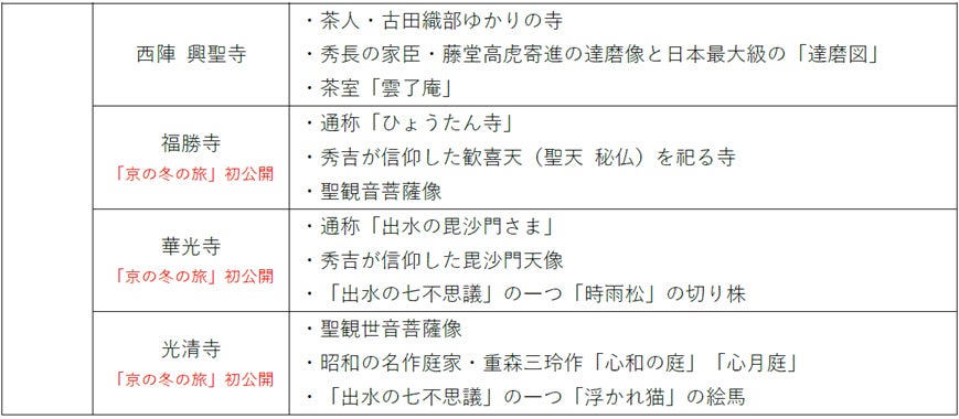 「京の冬の旅」非公開文化財特別公開スタンプラリー、「おこしバス」(定期観光バス)特別