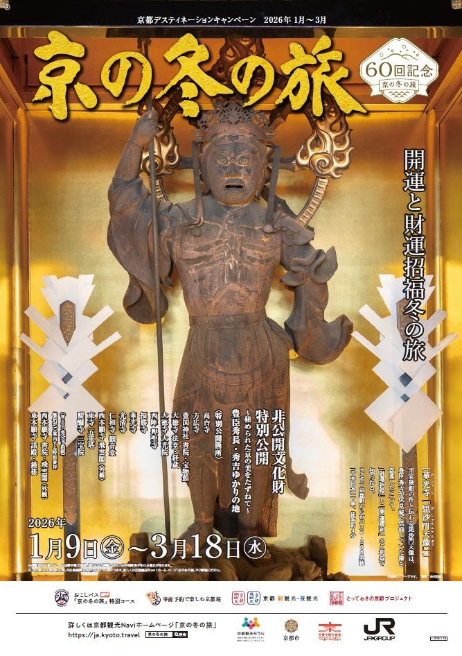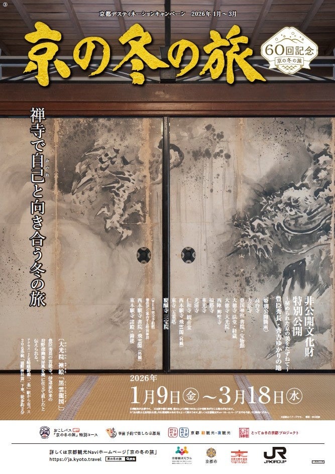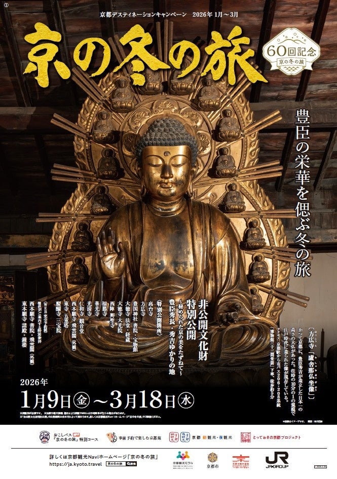 京都市及び京都市観光協会(DMO KYOTO)では、来年1月から3月にかけて、JRグループ6社と連携したデスティネーションキャンペーンとして「京の冬の旅」を実施します。