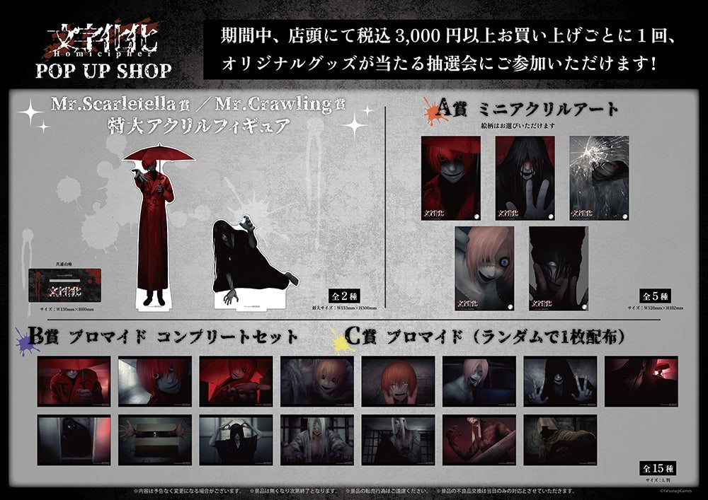 「ホラー男子との恋愛」をコンセプトにした世界で驚異的大ヒット中のゲーム「文字化化」が、初POP UP SHOPを開催!