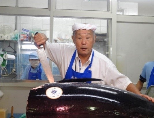 <魚の北辰>では、国内産の生本まぐろ(養殖)の解体ショーを開催し、目の前でさばいたまぐろを特別価格でご提供します。