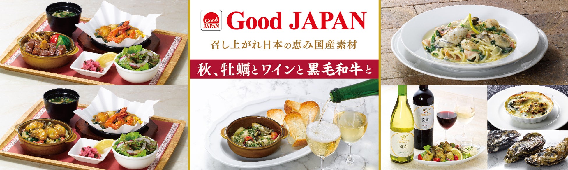 今回は、3月のGood JAPANでもご好評をいただいた「播磨灘産蒸し牡蠣」をメインとしたメニューなどが登場。また「日本ワイン」3種を選び抜き、お食事とのペアリングで付加価値体験をお楽しみいただけます。「召し上がれ 日本の恵み国産素材」をテーマに、国産食材の生産者様とその消費を応援しながら、それぞれの食材のもつ素材の旨みを活かした商品ラインアップを取り揃えました。