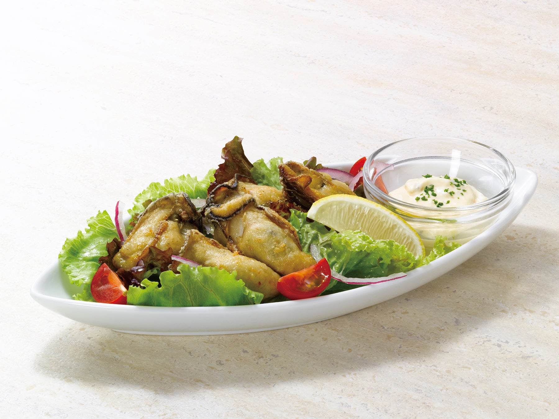 播磨灘産の牡蠣をフリットし、表面はカリっと中はふっくら仕上げました。お好みに合わせてコクのあるタルタルソースをつけたり、さっぱりとレモンをかけてお召し上がりください。