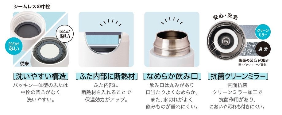 そんなお客様のお困り事を解決したい想いから、フタとパッキンが一体型になったステンレスボトルを発売。ご好評につき、この度全店舗にて取り扱いを開始いたしました。