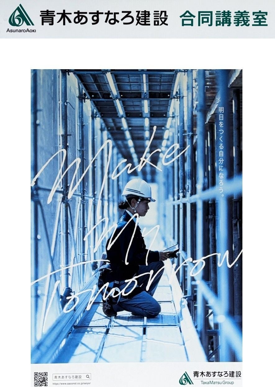 本施設は、建築コースをはじめ全コースにおける講義や講演、地域の小中学生向けものづくり体験教室などに利用されており、有明高専の講義室の中でも最大級の規模を誇る施設です。2024年4月1日から3年間は、「青木あすなろ建設合同講義室」の愛称で呼ばれることになります。