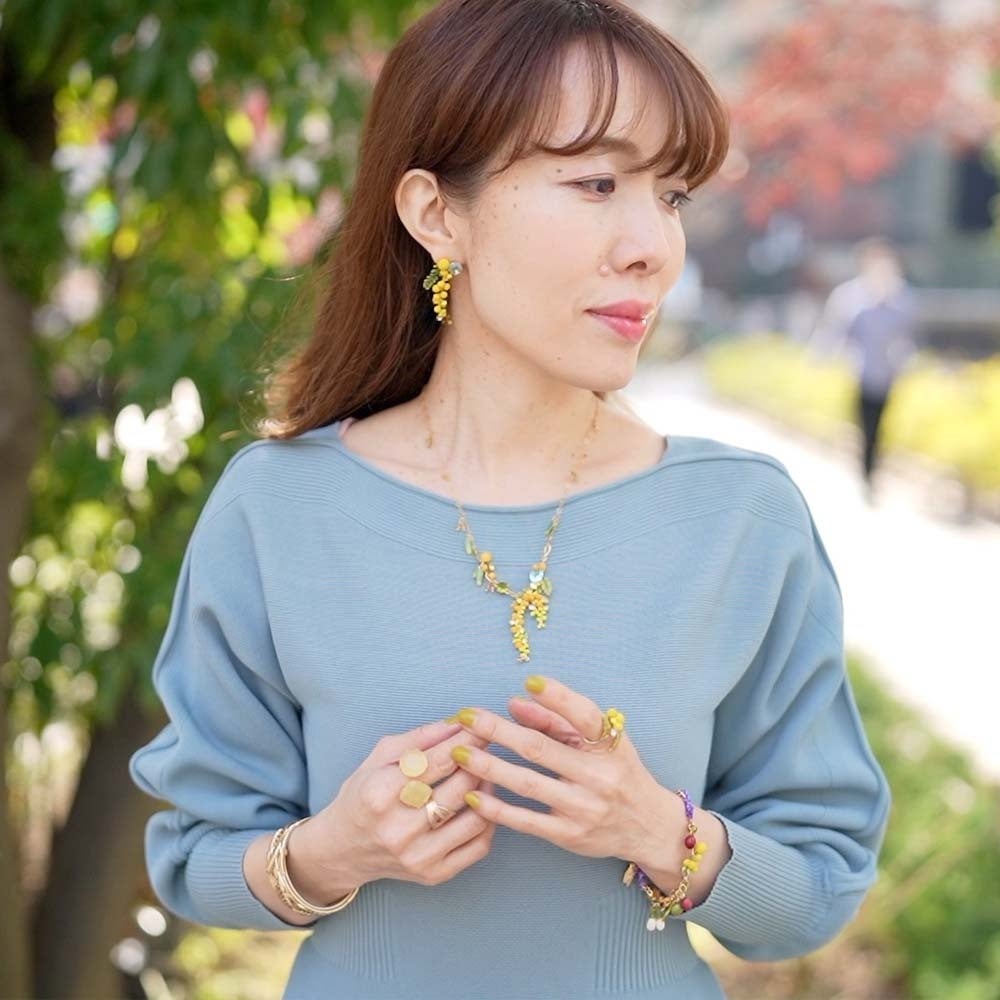 プロヴァンスの色とりどりのお花とクリスタル。光の洪水を巻き起こします!”Jardin de Provence”コレクションから、ミモザの枝が見事なイヤリングが到着しました。まるで本物かと見まごうばかりの鮮やかな彩色は、LesNéréideメゾンだからこそなせる技。クリアブルーの大きなガラスビーズが目を引き、更に葉っぱにも小さなクリスタルがぜいたくに散りばめられました。時代を超えた美しさを備えたイヤリングです。