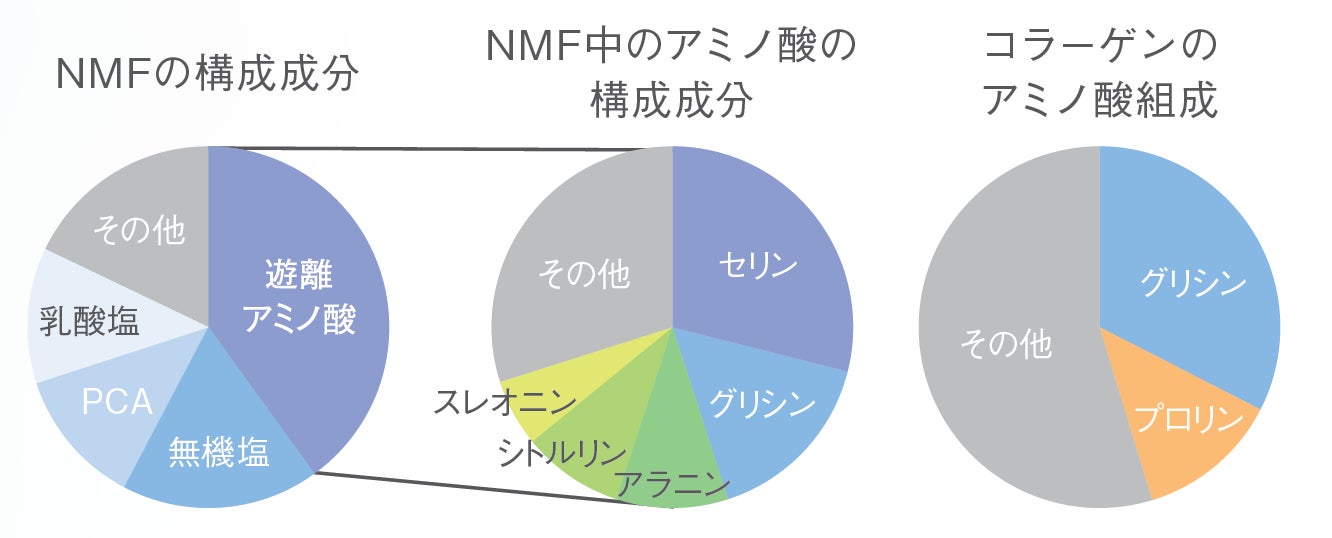 お肌にもともと存在する天然保湿因子(NMF)の主な構成成分はアミノ酸です。