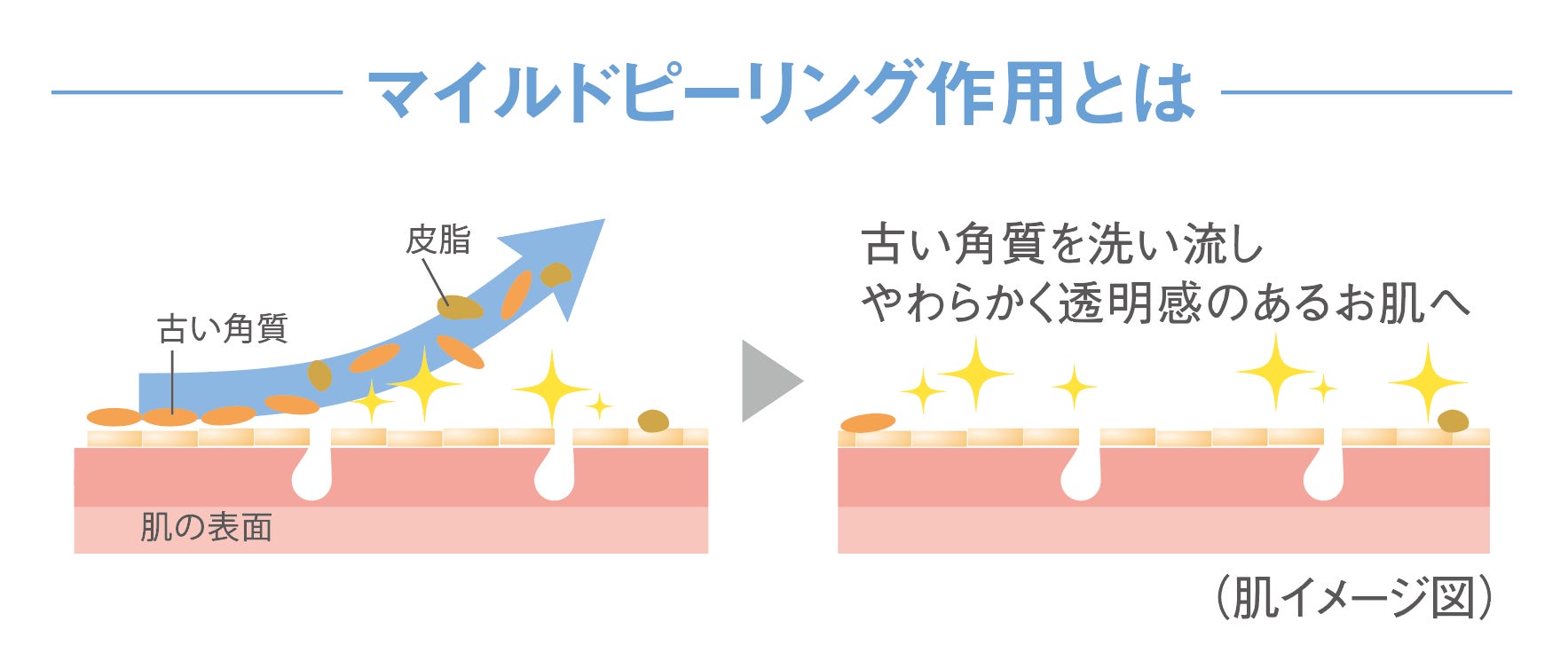 マイルドピーリング作用で古い角質を取りのぞき、ざらつきや古い角質によるくすみが気になるお肌をやわらかく透明感のあるお肌へ導きます。毎日お使いいただくのがおすすめです。