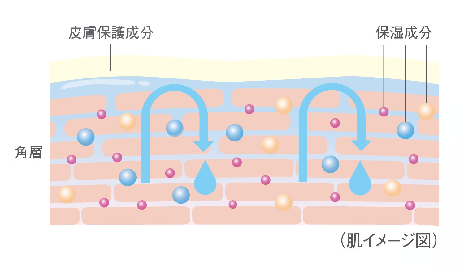 角層内で水分をつかまえ、お肌をうるおわせるはたらきがあります。