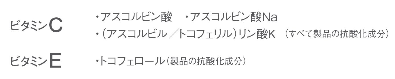 ※1 グリコール酸、乳酸、クエン酸(すべて保湿成分)※2 保湿成分 ※3 ポリクオタニウム-51 ※4 ベタイン、セリン、グリシン、アルギニン、アセチルヒドロキシプロリン(すべて保湿成分) ※5 ユビキノン ※6 ビタミンA:レチノール、レチノイン酸トコフェリル、ビタミンB:リボフラビン、ピリドキシンHCl(すべて保湿成分) ※7 ユビキノール ※8 皮膚保護成分 ※9 グリコール酸、乳酸(すべて保湿成分)