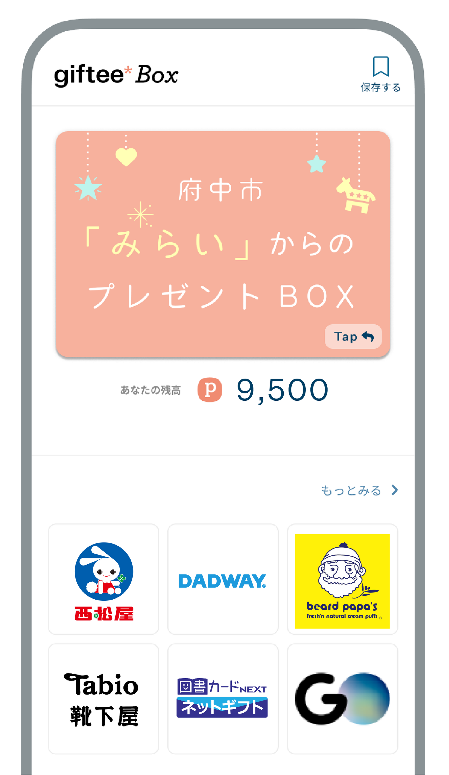 -給付ギフト:デジタルギフト「府中市 『みらい』からのプレゼントBOX」9,500円分