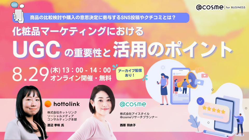 ウェビナー『化粧品マーケティングにおけるUGCの重要性と活用のポイント』8月29日(木)13:00開催