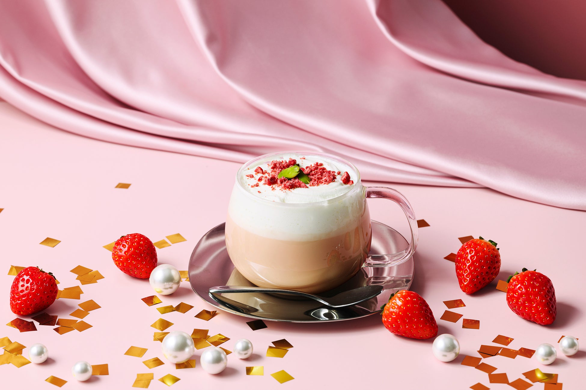 苺の色鮮やかなフルーツティーや、苺とピスタチオ香るミルクティー、爽やかな苺の甘みを感じるカクテル等、この時季にしか味わえないドリンクをご用意。