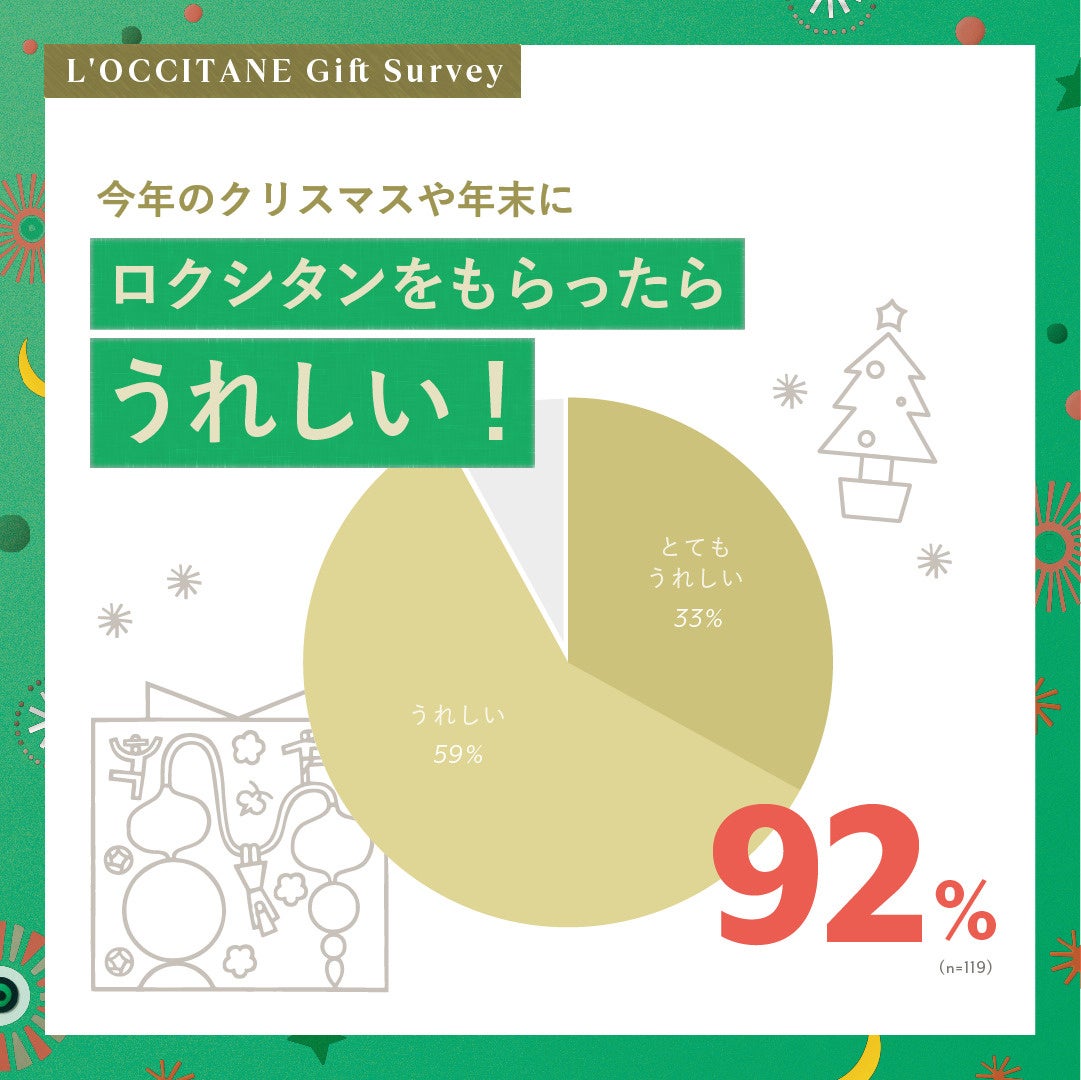 ■92%が、今年のクリスマスや年末に、ロクシタンのクリスマス限定や製品をもらったら「うれしい」。