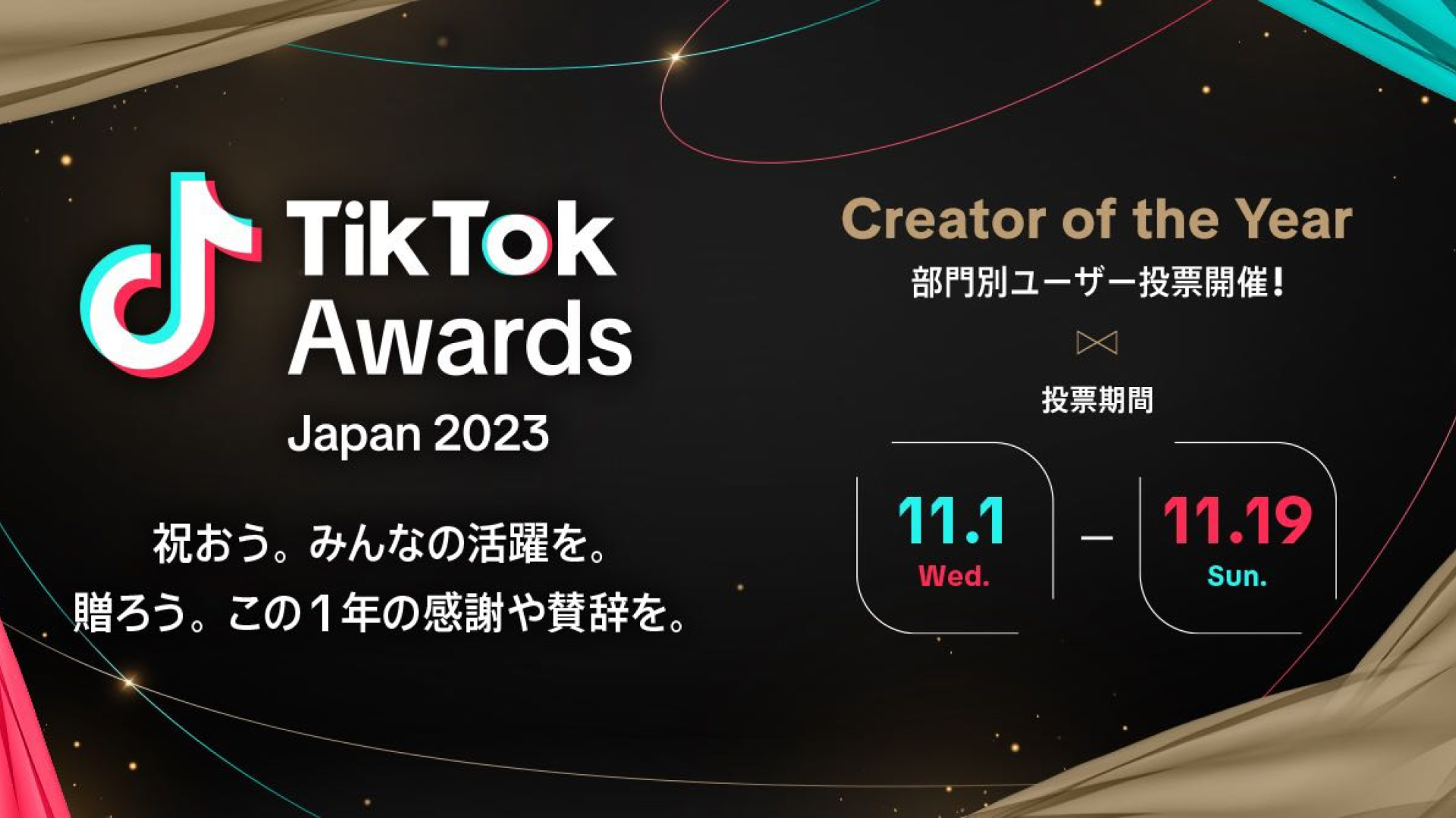 ショートムービープラットフォーム「TikTok(ティックトック)」が、2023年にTikTokで活躍したクリエイターを表彰する「TikTok Creator Awards Japan 2023」を開催します。